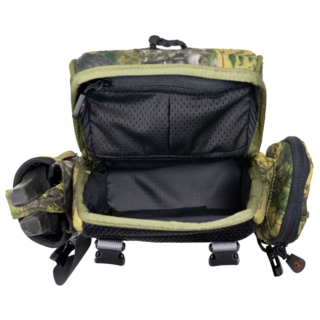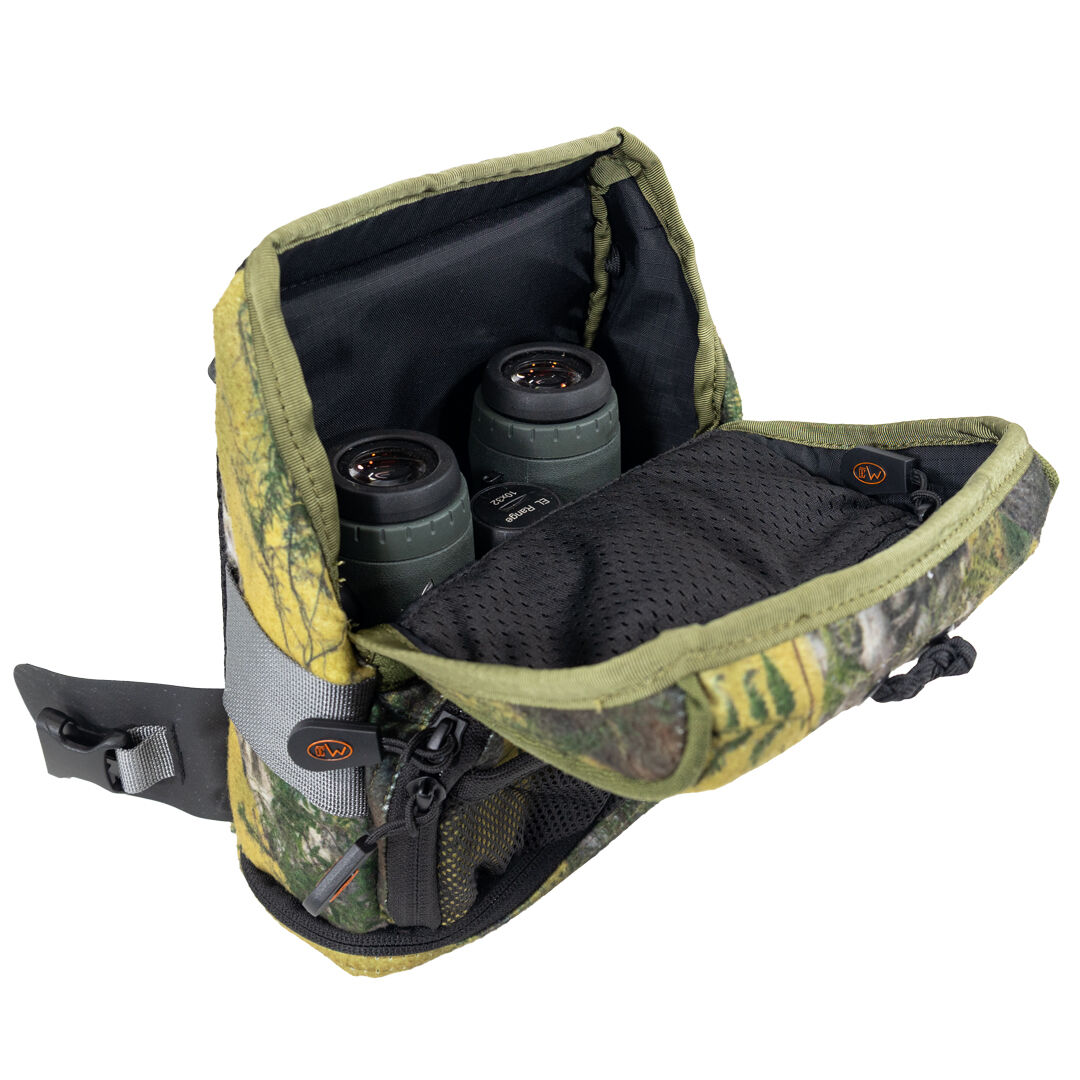 Built tough, it’s a no-nonsense chest rig designed to keep your glass and essentials right where you need them, without getting in your way. The forward-opening main pouch locks down with heavy-duty magnets for dead-silent access, protecting your binos from scuffs and rain and killing any rattle.