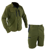 Styled for performance and function, our exclusive Australian designed modern patterning and fabric technology provides a lightweight shirt and pants combination with unmatched comfort and breathability. Contrast panels of highly breathable mesh are used in key areas to provide heat mitigation. The NanoStealth Shirt also features both a button closure side and cuff split to allow for maximum airflow & belt access/sleeve length adjustment. Dual button retainers on either sleeve mean that once rolled up, sleeves will not droop down and unravel. Solid panels of ripstop NanoStealth are featured in high abrasion areas. Twin chest pockets with interior mesh backing and sunglasses keeper provide ample storage and the ability to increase airflow further by leaving the zippered sides open. A triple rolled collar with integrated stiffener tab allows the wearer keep the sun off their neck on those high UV days. The Nano stealth shorts feature two front sash pockets and two zip closure, gusseted side pockets. With unmatched functionality, breathability and quality, this shirt is suited to the hunter with a keen eye for performance and innovation.